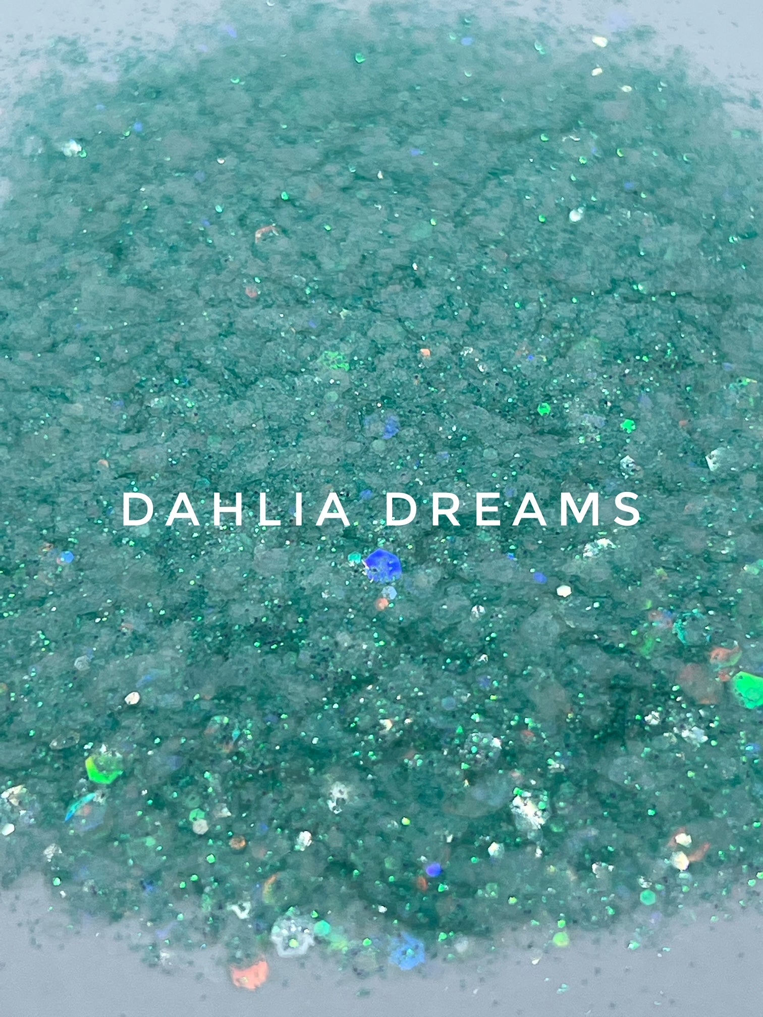 This iridescent / holographic glitter shows best on a like coloured base as there is clear holographic glitter in it.